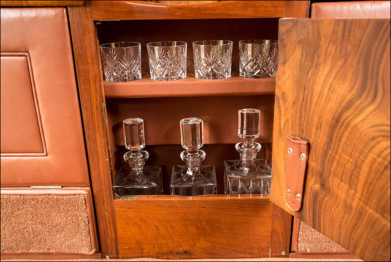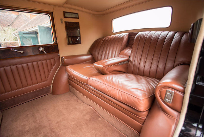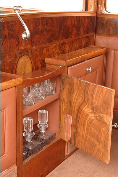 As one would expect of a coachbuilder long associated with marques of the highest quality, H J Mulliner equipped their products with luxurious appointments appropriate to such expensive chassis. Among other fittings, this 8-Litre's quite stunning interior – re-trimmed to the original pattern - is equipped with compact twin occasional seats which fold neatly into its central division, a cocktail cabinet and vanity units (see illustrated Hay Report on file).