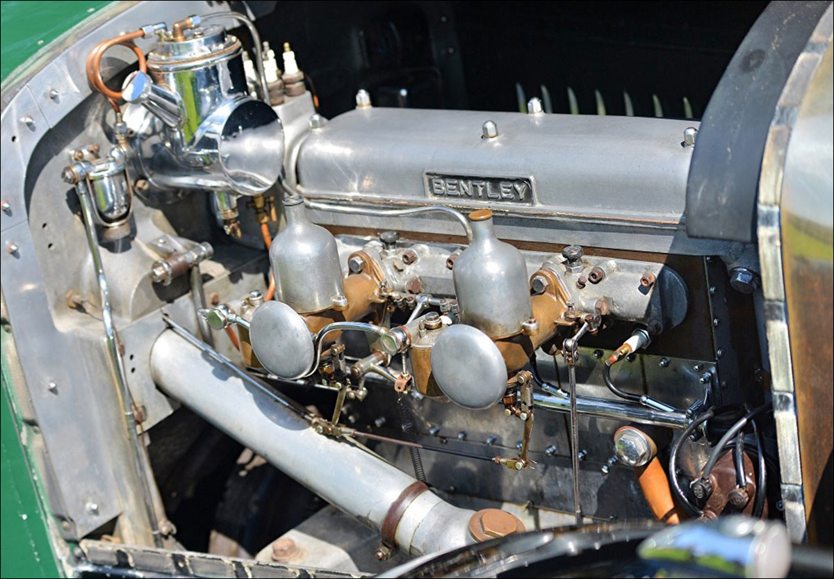 Walter Owen Bentley proudly showed his new 3 litre car at the 1919 Olympia Motor Exhibition, the prototype engine having fired up for the first time a few weeks earlier. This was the model which was to become a motor racing legend, with its classical radiator design and the British Racing Green livery, it has become the archetypal vintage sports car. Early success in the 1922 Isle of Man Tourist Trophy where Bentleys finished second, forth and fifth to take the team prize. However, by the mid 1920’s, the 3 Litre’s competitiveness was on the wane, together with the fact that too many customers were fitting unsuitable heavy coachwork led to the introduction of the 4½ Litre. The new 4½ model consisted of the chassis, gearbox and brakes of the 3 Litre model that it was replacing, the engine was, in essence, two-thirds of the six-cylinder 6½ litre unit. The new four-cylinder motor retained the same bore and stroke, four valves per cylinder driven by an overhead camshaft and having a combined block and cylinder head.